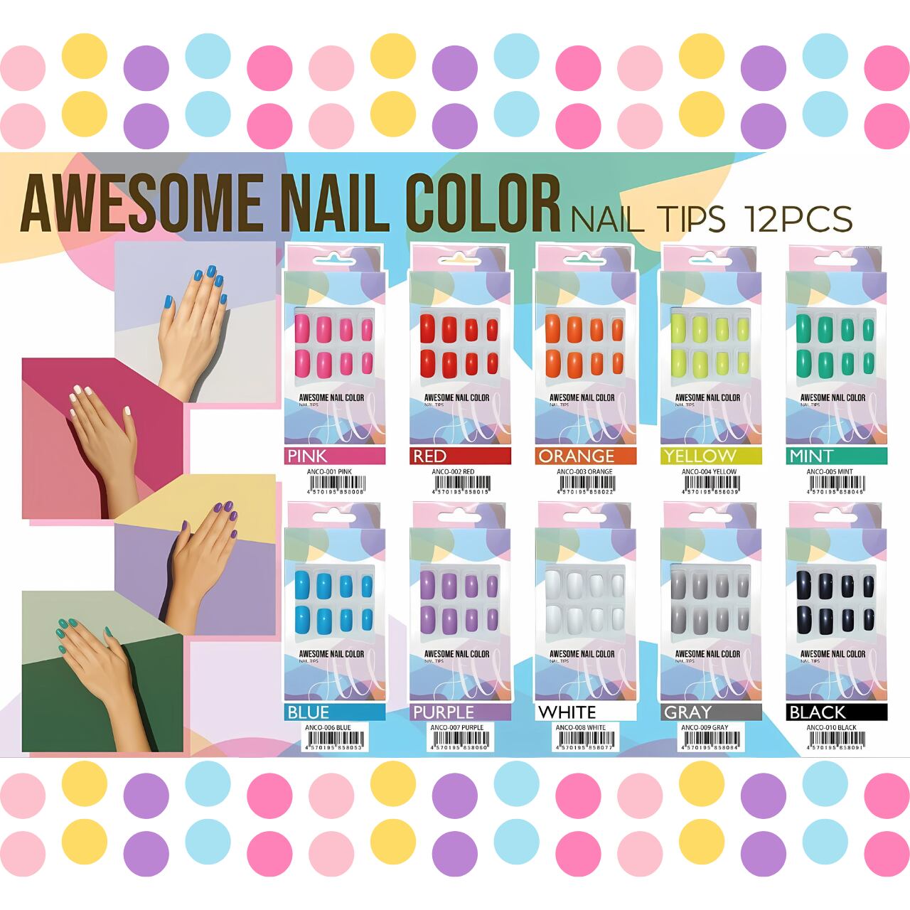 ★『Awesome Nail color Ver. 12PCS』多彩なカラーでネイルアートを楽しもう!自宅で手軽に、プロの仕上がりを再現できるネイルチップセットです!12種類の豊富なデザインが揃っており、気分に合わせてスタイルチェンジが楽しめます。