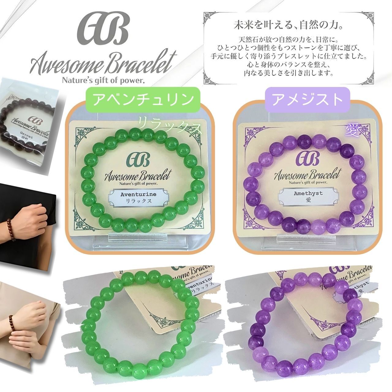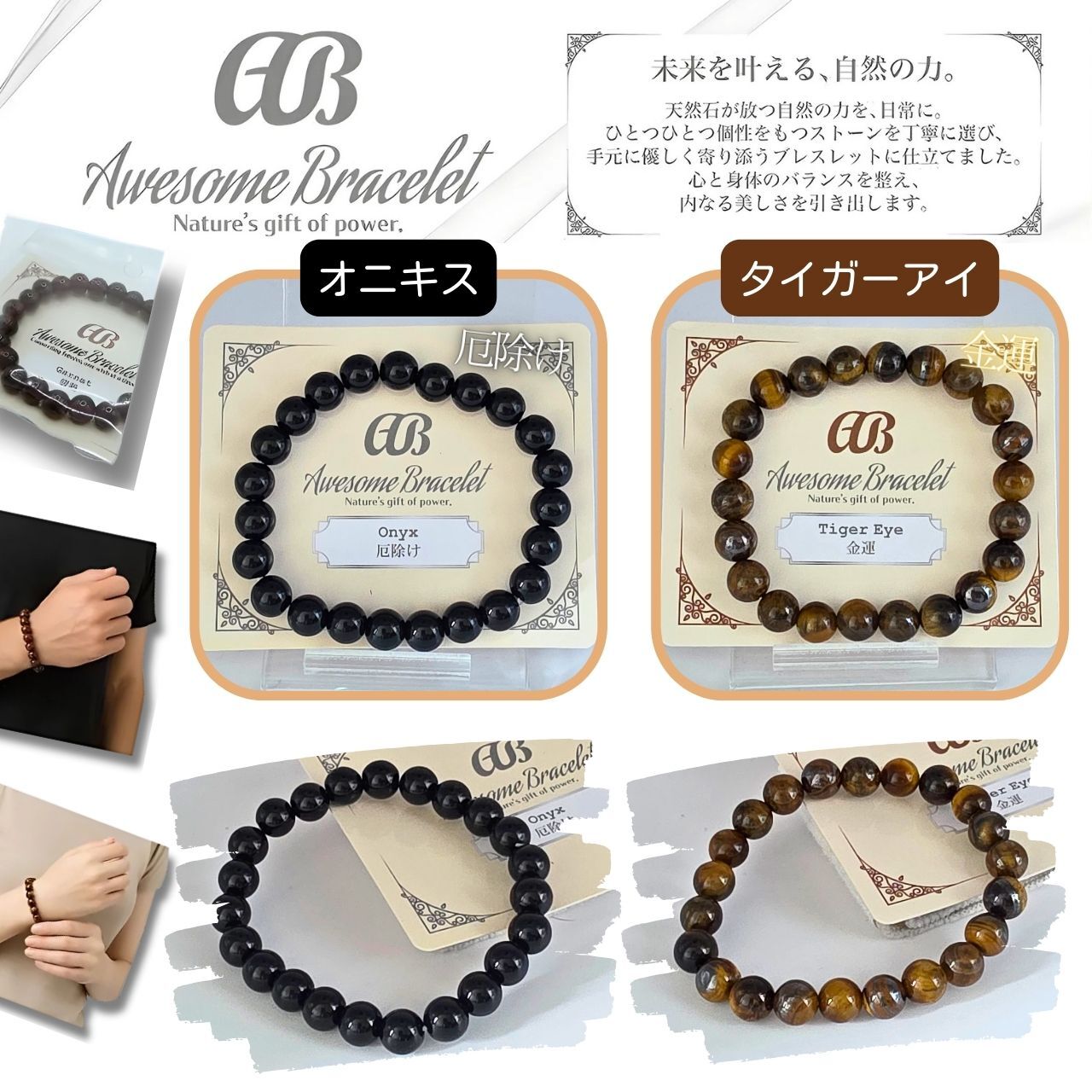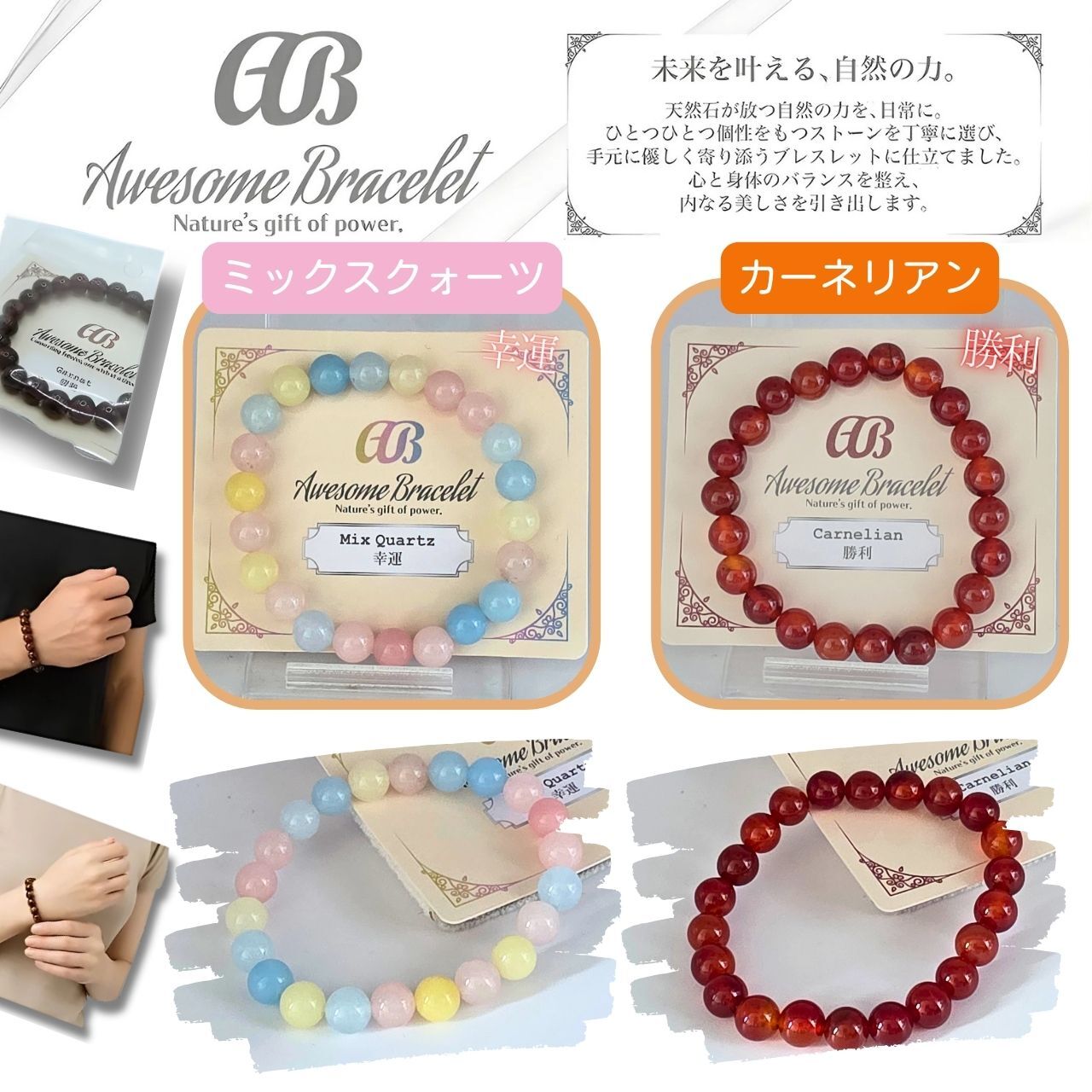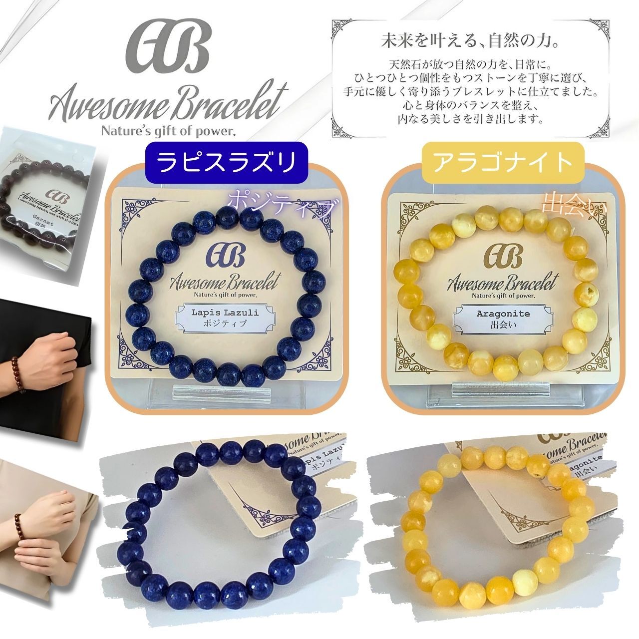 ★『Awesome Bracelet』ブレスレット 天然石 パワーストーン アクセサリー ブレス 8mm玉が新登場!上質な天然石を使用したこのブレスレットは、見る人を魅了する美しいデザインで、あなたの手元を華やかに彩ります。