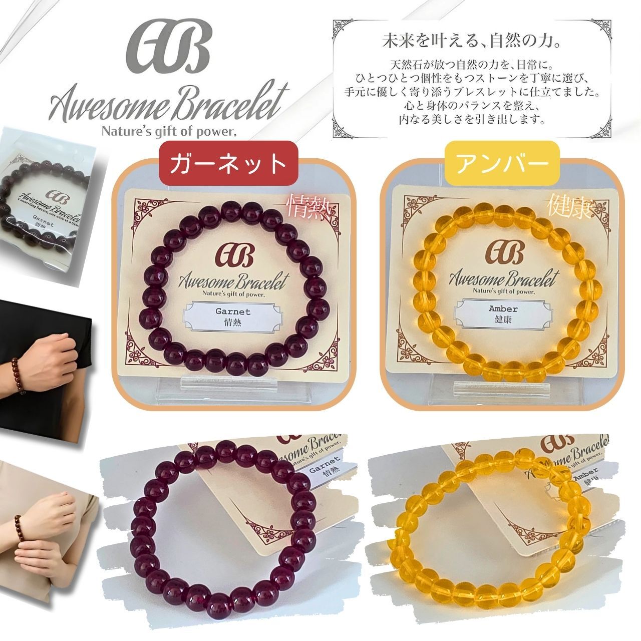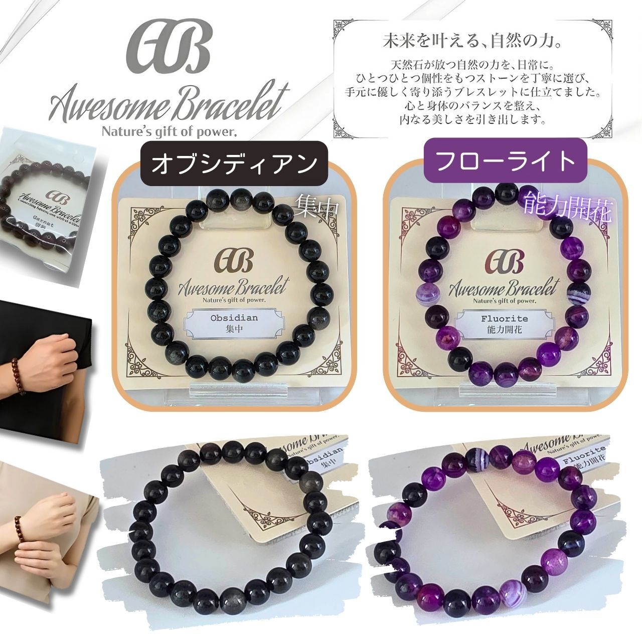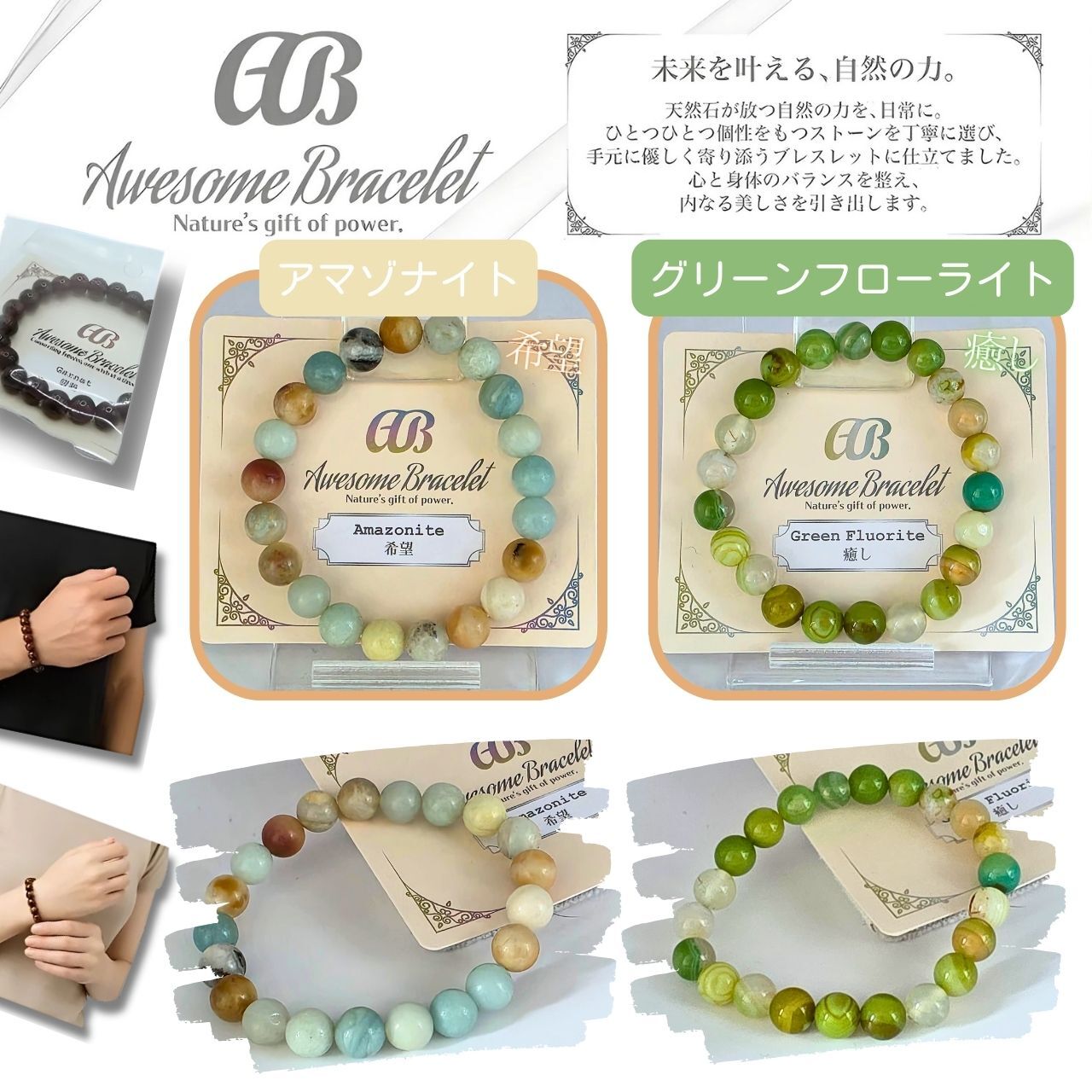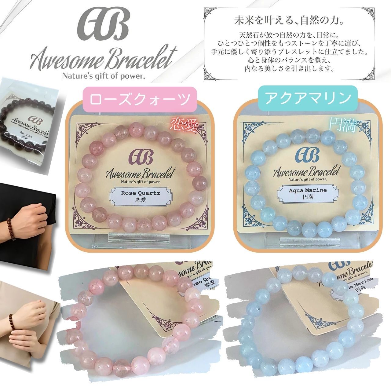 ★『Awesome Bracelet』ブレスレット 天然石 パワーストーン アクセサリー ブレス 8mm玉が新登場!上質な天然石を使用したこのブレスレットは、見る人を魅了する美しいデザインで、あなたの手元を華やかに彩ります。
