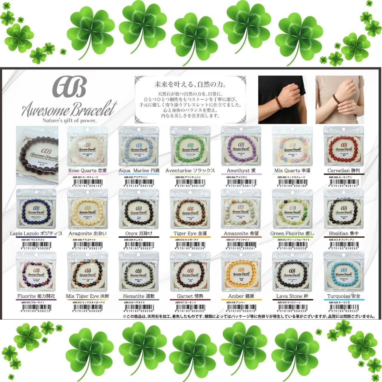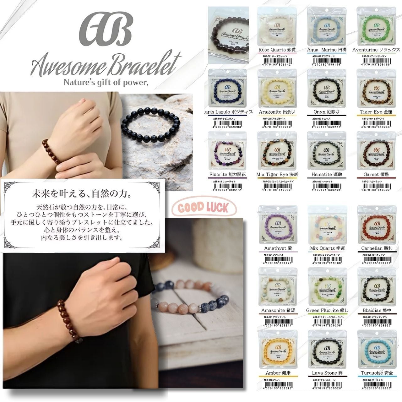『Awesome Bracelet 』20種類 ブレスレット 天然石 パワーストーン アクセサリー ブレス 8mm玉 【International Shipping via Proxy Service】