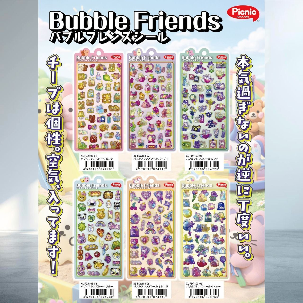 【単品】【バブルフレンズシール】シール ぷっくり 立体シール ボンボンシール ドロップシール 【International Shipping via Proxy Service】